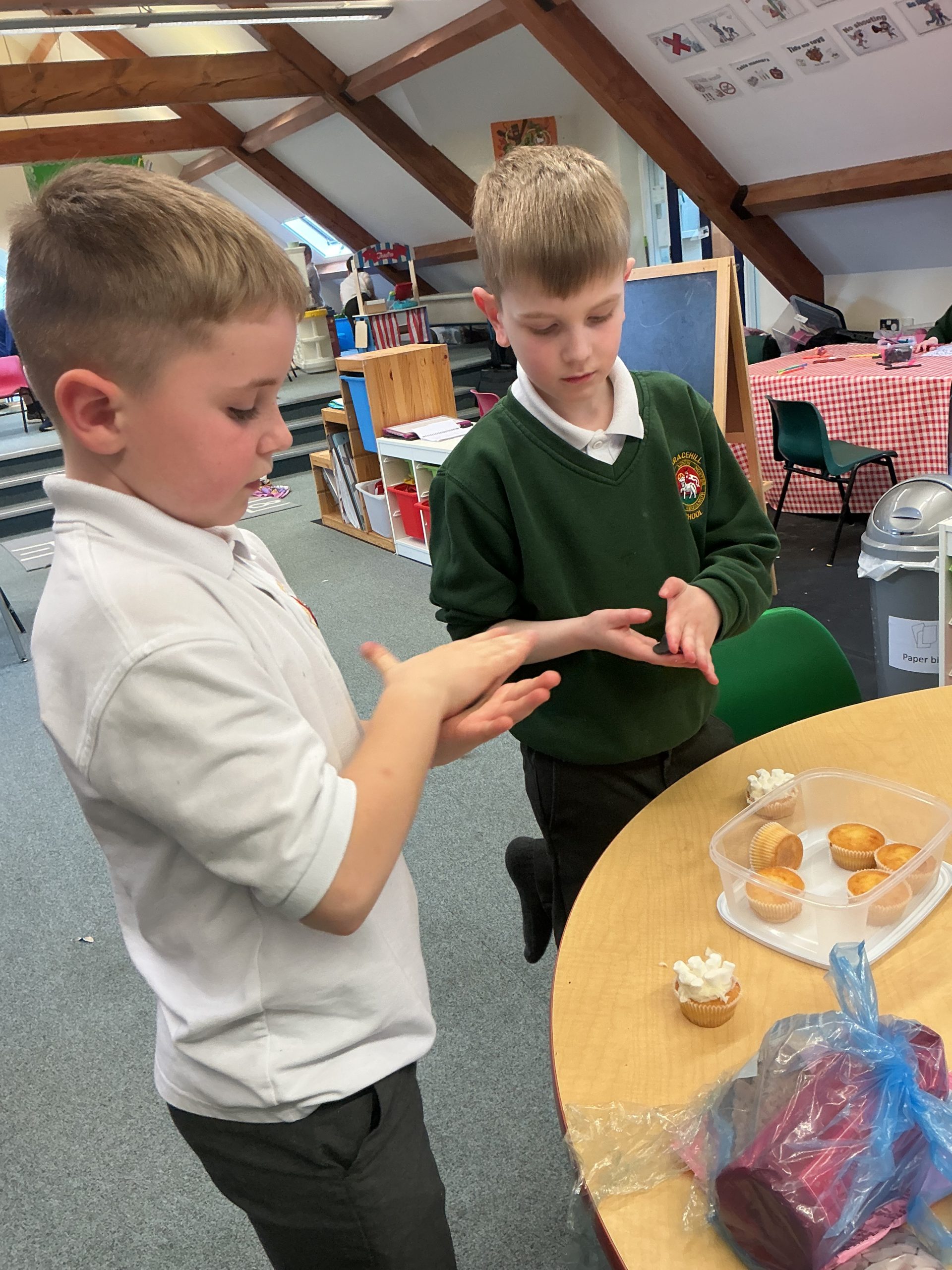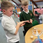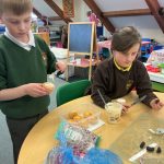 Chocolate overload continued! The children made easter themed shaped chocolate sweets. After melting the chocolate the children spooned it into the moulds. There was carrots, bunnies and eggs. The children enjoyed making these but most of all eating them.