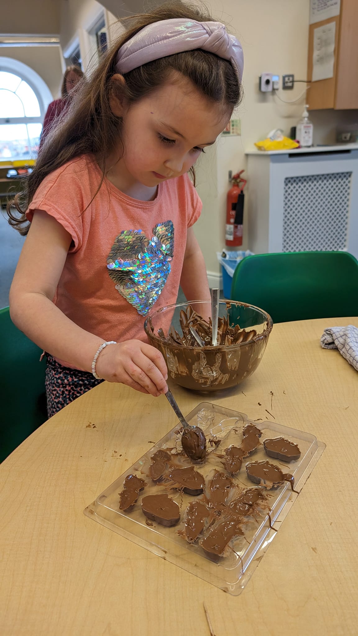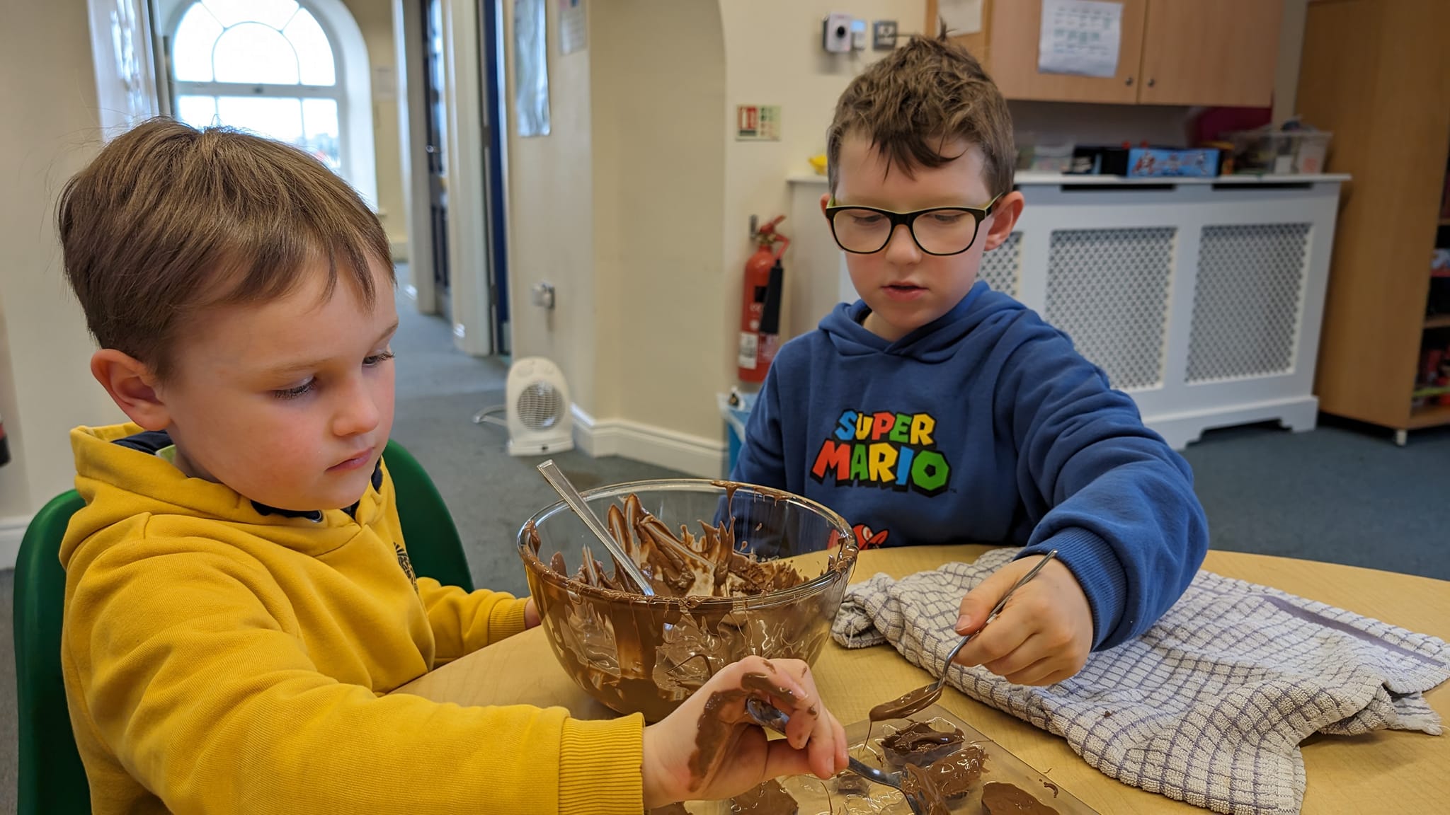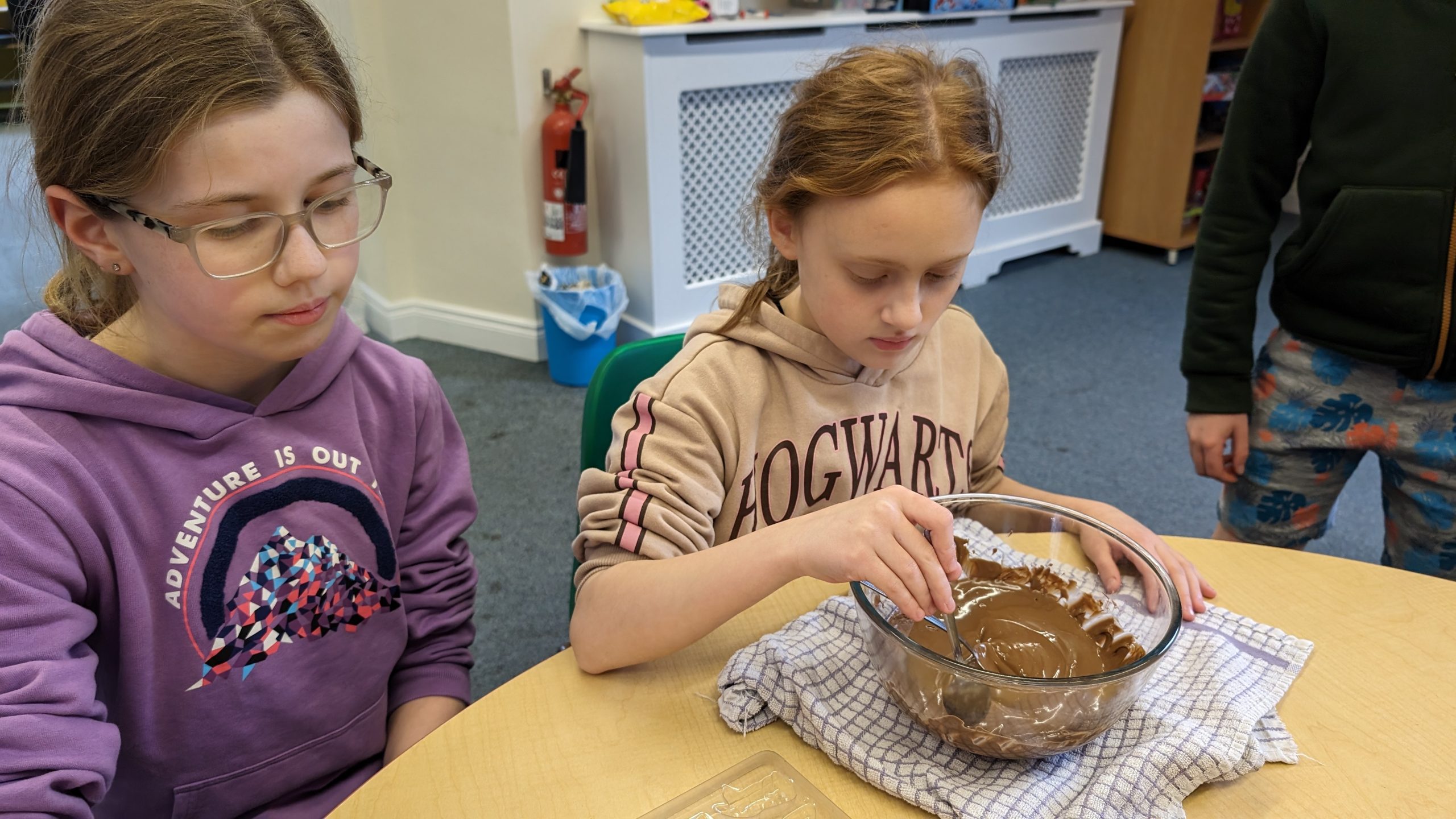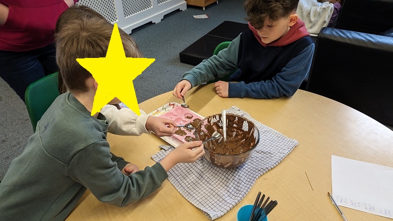Chocolate overload continued! The children made easter themed shaped chocolate sweets. After melting the chocolate the children spooned it into the moulds. There was carrots, bunnies and eggs. The children enjoyed making these but most of all eating them.
