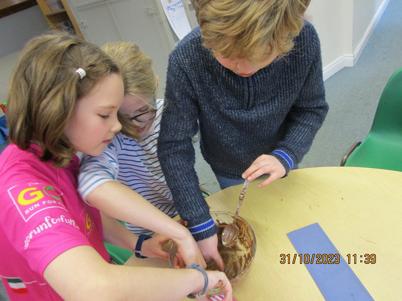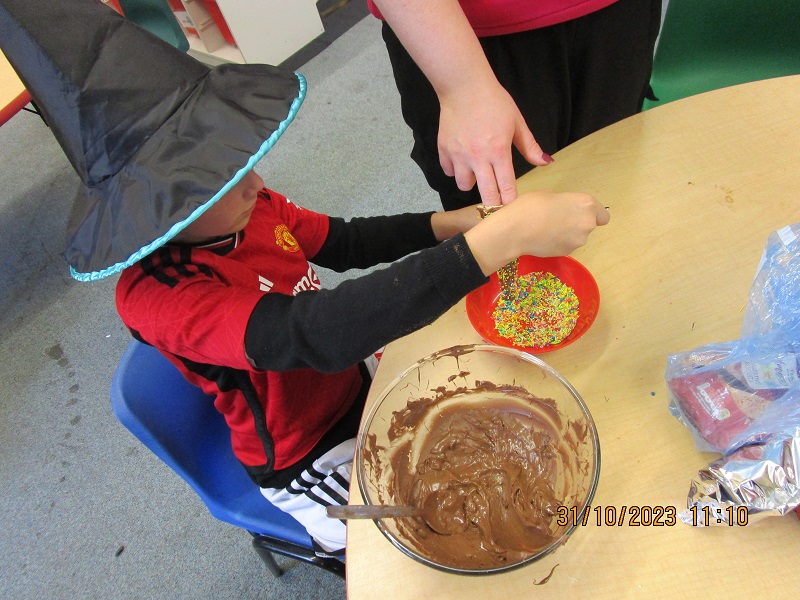 November Holiday at Gracehill wouldn’t be complete without some baking. Fairy cakes were baked and when cooled the children had the opportunity to turn them into spiders. They covered the top of the fairy cake with white fondant icing and then added red laces for legs. Icing pens were used to give the spider a face. We also received some lovely halloween shortbread from Irons Bakery, Harryville. These were very tasty and enjoyed by children and staff.